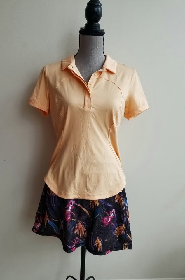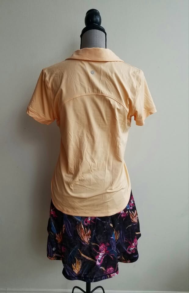 Excellent condition, no flaws, Lululemon Quick-Dry Short-Sleeve Polo Shirt in Summer Glow, size L, from pet and smoke-free home, no holds unless etransfer