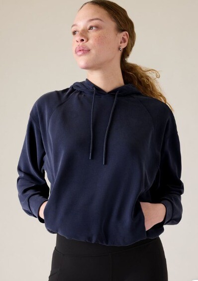 NEW Athleta Seasoft Bubble Hem Hoodie in heathered black, size M