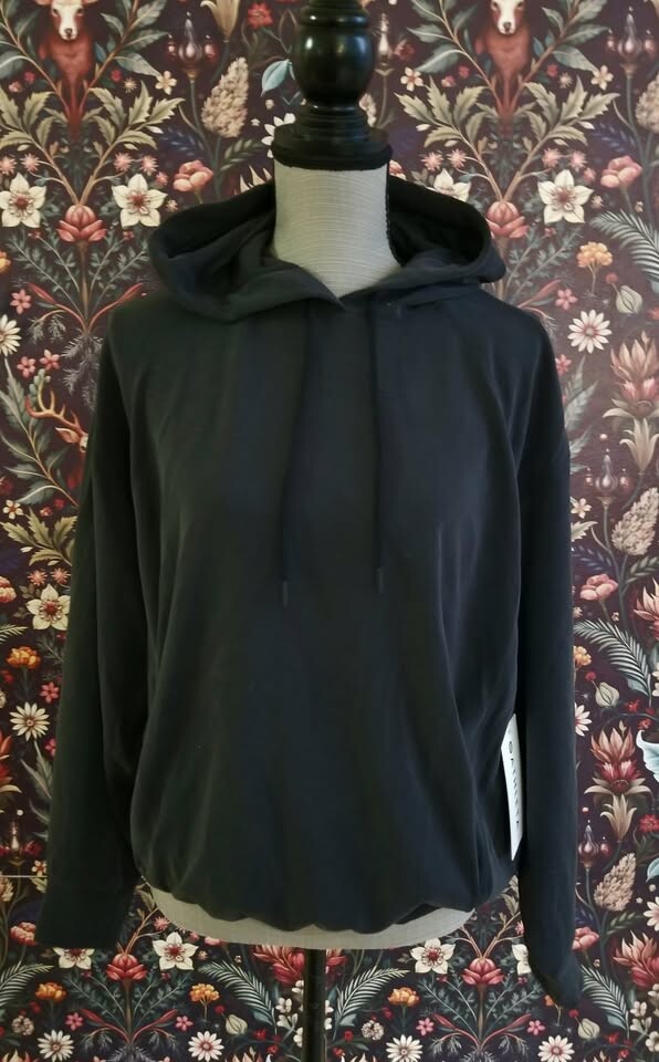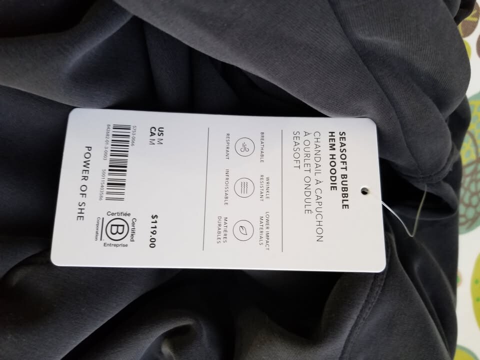 New with tags, never worn, perfect condition, no flaws, Athleta Seasoft Bubble Hem Hoodie in heathered black, size M, from pet and smoke-free home, no holds unless etransfer, OP: $119 +tax